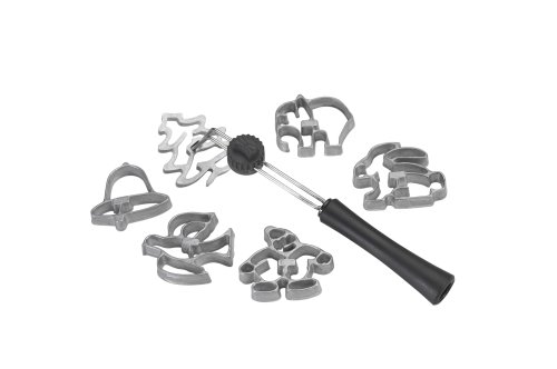 Create melt-in-your-mouth Swedish pastries with NordicWare's All Seasons rosette cookie set. Featuring six adorable shapes, there's a theme for every time of the year, from the Christmas tree to the Easter bunny to the clown, bell, dove, and elephant. Making rosettes is fun and easy (plus, it's a nice change from baking): Simply attach a cast-aluminum mold to the long-handled iron and heat it in hot oil, then dip the mold into batter and return to the oil to deep-fry a crispy treat. This system works with lots of sweet and savory recipes including international fare like Greek diples and Mexican fritter cookies, and NordicWare includes a few recipes to get ideas rolling. Hand washing is recommended for cleanup.