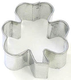 Mini Shamrock cookie cutter, made of sturdy tin, Size 1.75 in., Depth 3/4 in., Color silver