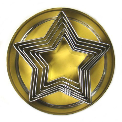 These star cutters are between 1.75 inches and 3.5 inches. Comes in a canister for easy storage. Tinplate steel. Made in Italy.