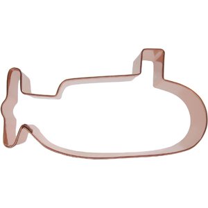 Submarine Cookie Cutter measures 4-3/4 x 2-1/4 inches tall. This cutter makes great homecoming cookies for your sailor - or how about submarine shaped bread for your "submarine sandwich"?Submarine Cookie Cutter will be 1-1/8 inches deep after one side of the copper is tightly folded over for safety and stability. Our sturdy, copper cookie cutters are shaped by hand and soldered together for a permanent old-fashioned hold. Handmade copper cookie cutters may vary in size and shape.Submarine Cookie Cutter
