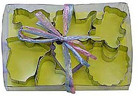 Cute mini cookie cutters in baby theme are perfect for a baby shower for treats or a craft project. High quality cutters feature the following shapes: Onsie, bib, rocking horse, teddy bear, bottle, carriage, and heart.