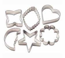 Metal Cookie Cutters. A set of 6 metal cookie cutters in fun shapes! Each cutter is approximately 3" with deep rolled edges for safe and easy use. Packages contain cookie recipe. Various themed sets available.